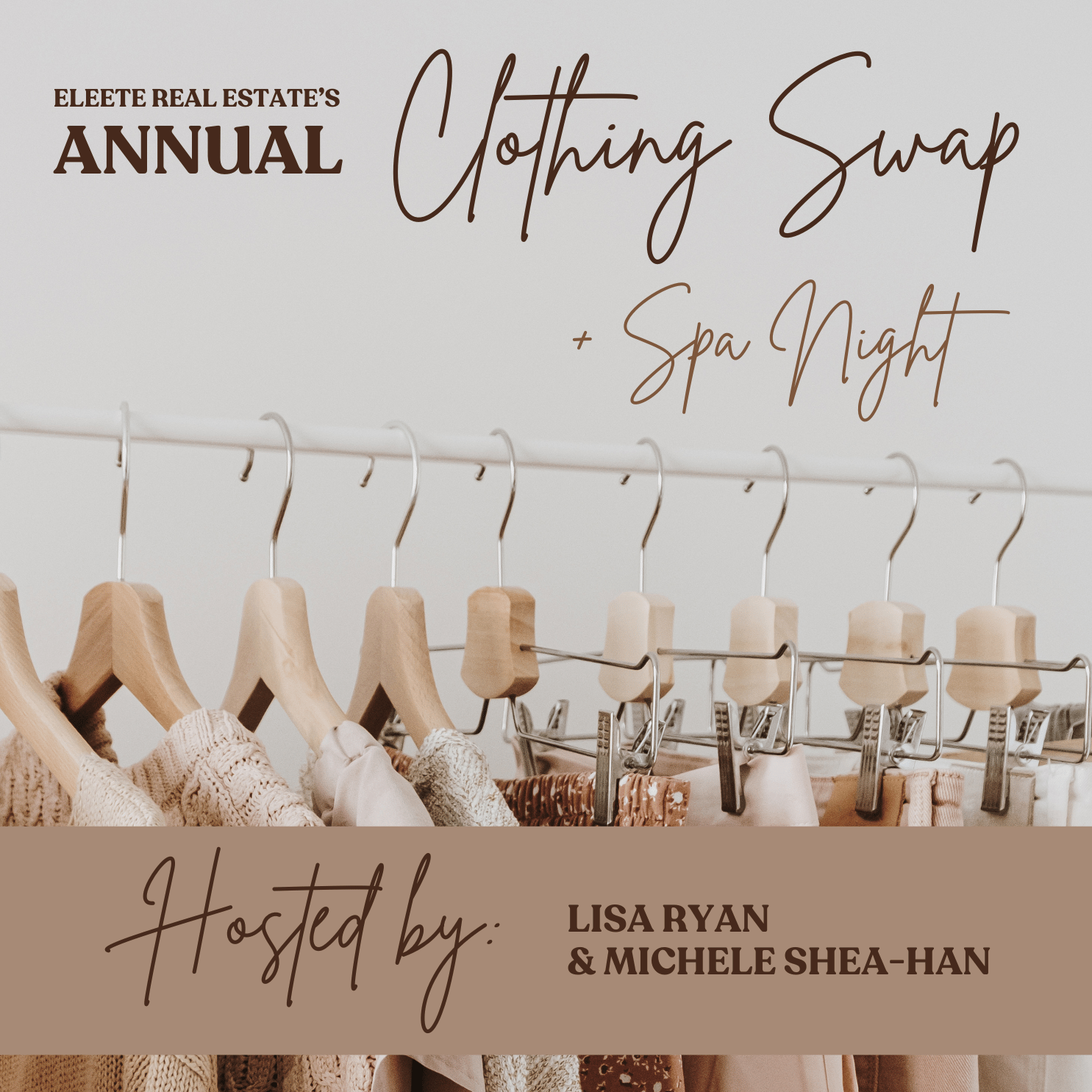 ELEETE hosted our annual clothing swap, this time with spa give aways from Kris Latimer of Sage MediSpa Studio. All remaining, unexchanged clothing was donated to Dress for Success, a local non-profit that empowers women to achieve economic independence by providing professional attire, educational support, and developmental tools.